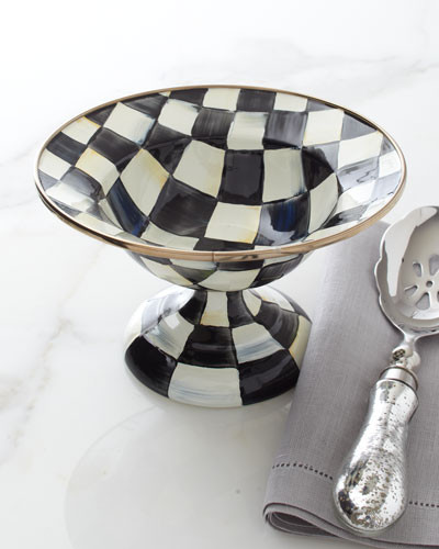 Small compote on pedestal is decorated in signature black-and-white Courtly Check® pattern.